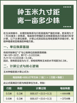 玉米种植的行距和株距需根据品种特性、种植季节及种植方式综合调整,具体标准如下...