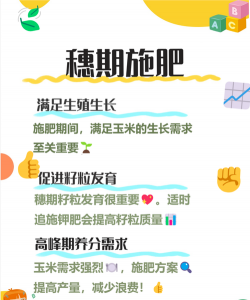 - 大喇叭口期(7-9叶):需肥量最大,以氮肥为主,配合磷钾肥,促进穗大粒多;