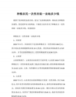 - 国家层面曾实行每亩15元补贴(2018年数据),部分地区有调整:
