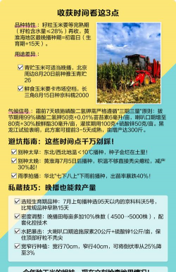 四、收获判断依据最佳收获期通常以 玉米背面乳线消失、籽粒饱满且穗部变黄为标志