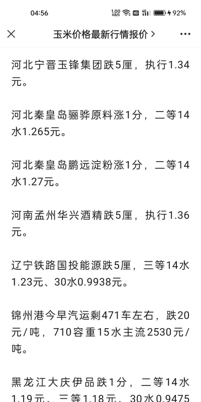三、价格波动因素区域差异: - 东北产区(如黑龙江):1.42-1.6元/斤 - 南方产区(如云南):1.3-2.9元/斤 - 普遍范围:1.39-1.6元/斤 - 收购量增加(如山东加工企业开工率高):价格上浮 - 需求下降(如养殖规模减少):价格承压