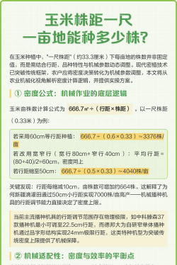 玉米种植的行距和株距需根据品种特性、种植季节及种植方式综合调整,具体标准如下...