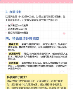 总结玉米浇水需“见干见湿”,具体频率需根据植株生长状态和环境条件动态调整。建议定期检查土壤湿度,并结合天气变化及时调整灌溉计划,以保证玉米健康生长和高产。
