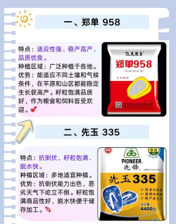 四、种植建议北方地区: 优先选择郑单958、先玉335,春播时注意控制播种密度(3000-3500株/亩)。 南方地区