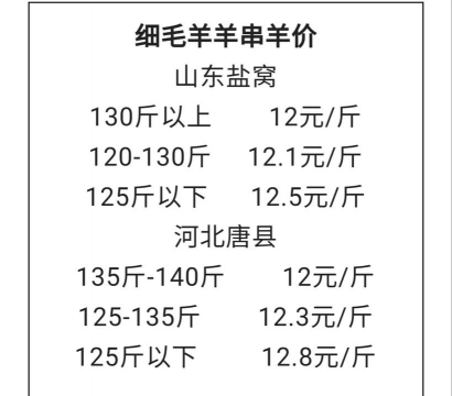 内蒙古乌丹:寒羊公羔是11块5到11块6,肉羊串公羔是11块7到11块8,母羔子11块1到11块2,85斤往里的是11块3。