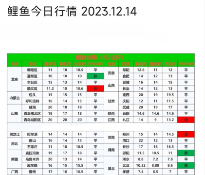 根据最新的市场信息,一斤鲤鱼的价格大约在 4至10元之间,具体价格可能会受到地区、季节、市场供需、鱼的规格大小及养殖方式等多种因素的影响。以下是几个具体地区的鲤鱼价格信息: