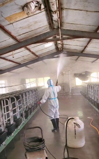 生石灰与水按1:10配比制成10%-20%石灰乳,用于墙壁、地面、天棚的粉刷或喷洒,尤其适用于口蹄疫、传染性胸膜肺炎等疫病防控。