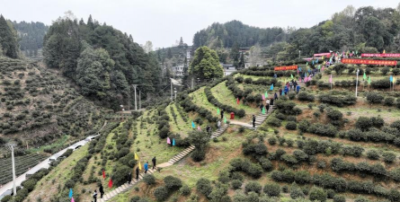 在茶园投放山羊进行“养羊控草”,利用羊群采食茶叶减少农药使用,同时提升茶叶品质,实现生态循环。