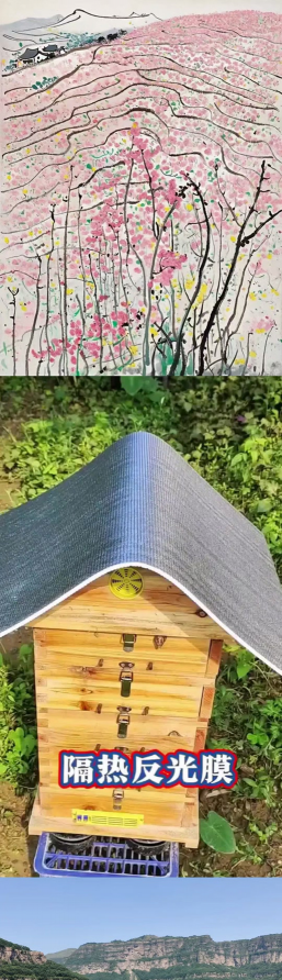 - 在蜂箱周围种植藤蔓植物(如金银花、紫云英)或高大的乔木,既能提供蜜源,又能通过蒸腾作用降低环境温度。