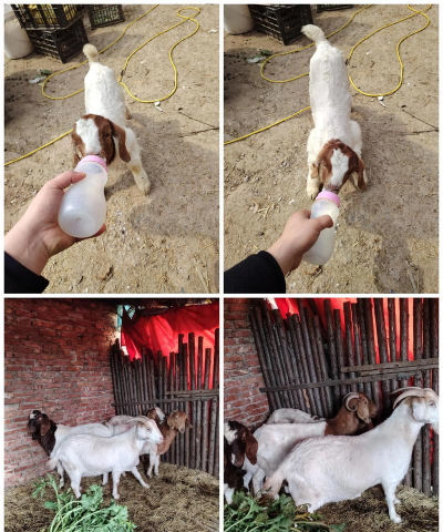 - 每天下午放羊后带回1捆青草或灌木叶,2月龄内小羊可保证充足青草,搭配每日一瓢玉米粉促进生长。