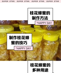 - 分层摆放桂花与蜂蜜,密封容器中多次淋蜜并覆盖保鲜膜发酵3-5天。