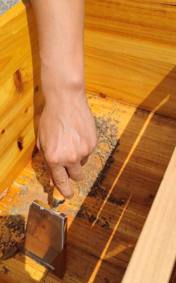 - 使用刷子或刮刀清除蜂箱、巢脾等表面的污垢和蜂蜡残留,尤其要刮除难清理的角落。