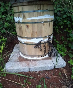 - 选择直径约30厘米的杉木桶,底部打孔便于喂食和检查,顶部留口方便取蜜。 - 用高锰酸钾浸泡木桶消毒,晾干后可在内部涂抹蜂蜡或蜂蜜引诱蜜蜂。
