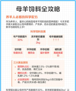 通过以上配比方法和注意事项,可确保羊只健康生长,提高养殖效益。建议根据实际情况调整配方,并咨询专业兽医或营养师优化营养组合。