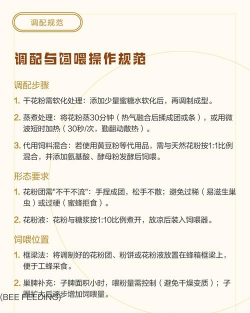 - 缺蜜期需补充白糖水(半斤/次)或蜂蜜(10g/次),配合花粉促进生长。 - 发现蜂螨或病虫害时,及时清理死蜂并使用药物熏蒸消毒。