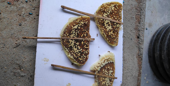 - 在山岗高处煮沸蜂蜜,吸引蜜蜂后沿飞行路线追踪蜂巢,反复定位定位。