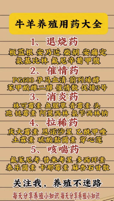 养羊常用药的搭配需根据具体病症和羊群状况调整,以下为综合建议: