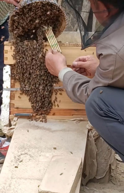 春季选择健康、蜂王健壮的蜂群引入,动作轻缓并喷淡盐水减少应激。若本地无优质蜂群,可购入后进行分蜂或合并。