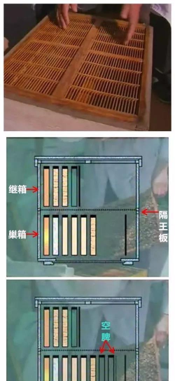 - 继箱与原蜂箱之间需安装隔王板,划分繁殖区(含蜂王)和生产区。