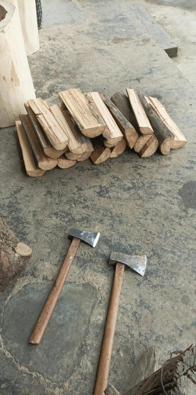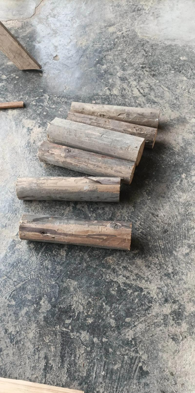 原木加工:选择直径15-20厘米的圆木,锯成所需长度(如50厘米)。
