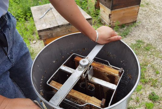 - 选择蜜脾最多的蜂群,留下含蜂王的蜜脾,其余全部抖蜂摇蜜。