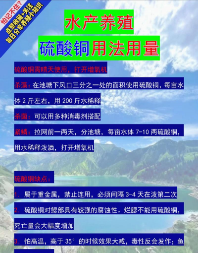 硫酸铜在水产养殖中的用量需根据养殖类型、水温、水质及使用目的综合调整,具体建议如下: