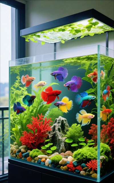 :色彩斑斓,形态多样,观赏价值高。需25℃以上水温,水质需保持清澈,适合搭配水草和沙石装饰。 - 注意事项:对水质管理要求严格,适合有一定经验的养殖者。