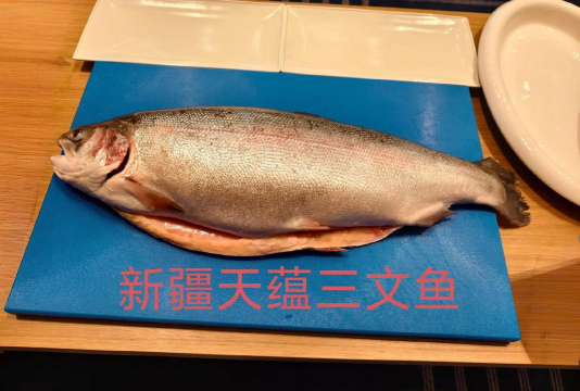 :鳞小刺少,肉质细腻,适合在冰雪融水丰富的区域养殖。三文鱼- 尼勒克县三文鱼基地: