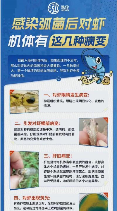 弧菌感染可导致鱼虾肝胰脏坏死、空肠空胃、烂尾病等,严重时引发死亡。对虾养殖中,弧菌是头号杀手,可导致早期肝胰腺坏死。