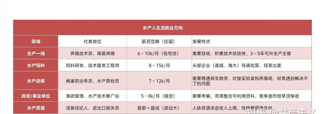 职业发展:可通过技术积累晋升为技术主管或管理岗位,或转向水产贸易、咨询等领域。