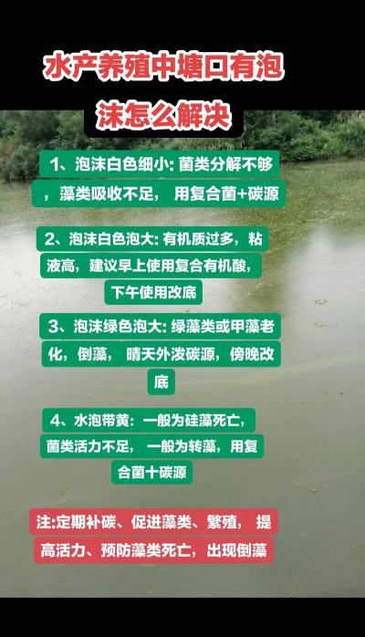 针对水产养殖中泡沫问题的处理,需结合物理、化学及生态调控方法,具体措施如下: