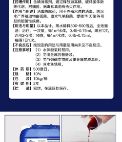 水产养殖中常用的消毒剂种类繁多,根据化学成分和作用机制可分为以下几类,并附上...