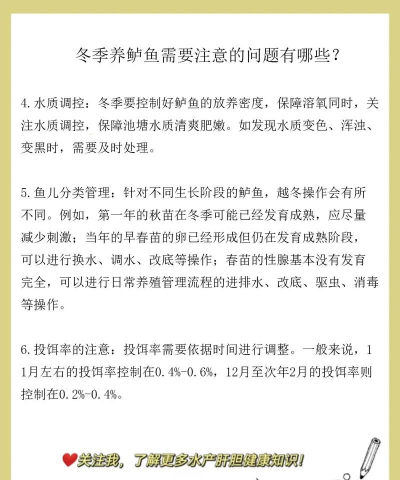 - 发现冻伤或疾病鱼类时,及时隔离治疗,避免污染其他水体。