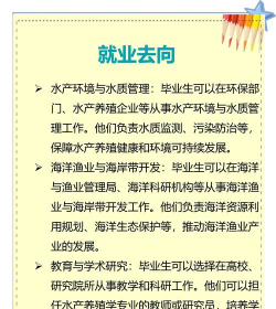 该专业可延伸至水产科研、饲料研发、环境保护、水产旅游等领域,为女生提供非传统农业领域的就业机会。