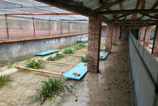 成蛙期:饲料以黄粉虫为主,投喂量占体重6%,定时定位投喂。密度7cm以下90-120只/㎡,7cm以上20-30只/㎡。