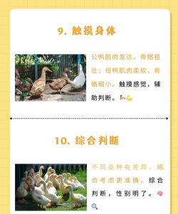 “大鸭子”一般指的是成年鸭子,要判断它们的公母(性别),可以通过以下几种方法来辨别: