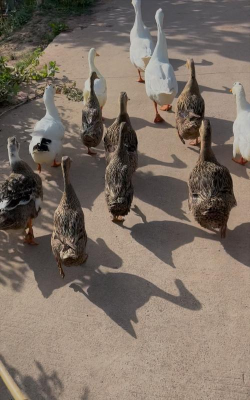 有些农民会把鸭子和鹅一起养,因为它们的食物需求相似,可以节省空间和饲料。