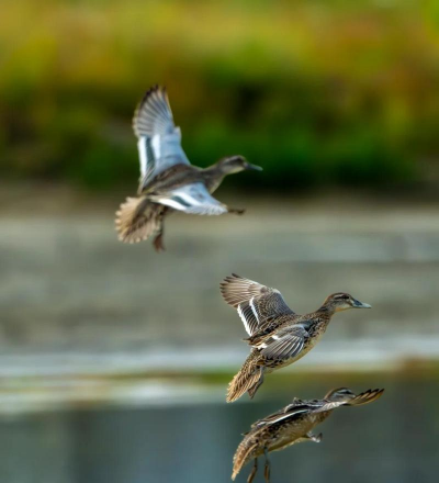 野鸭(如绿头鸭、赤颈鸭等)在自然环境中会迁徙、觅食和逃避天敌,因此飞行能力较强。