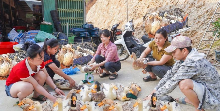 在当地的农贸市场或农村集市上直接售卖活鸭或宰杀后的鸭肉。