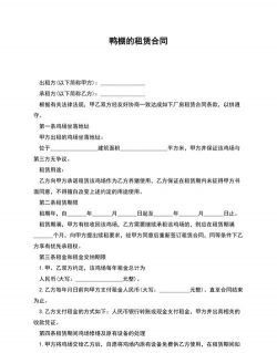以下是一份租赁养殖户鸭子大棚合同的范本,您可以根据实际情况进行修改和补充:
