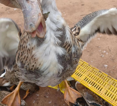 品种特性:有些鸭子品种(如某些肉用鸭、麻鸭)在成年后,屁股周围可能会自然掉毛或毛较少,尤其是腹部和尾部区域。这是正常现象,不需要特别担心。