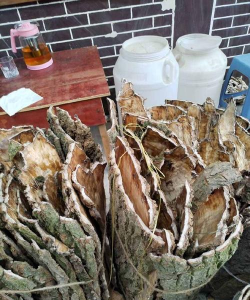 杜仲皮(即杜仲树的树皮)是一种传统中药材,具有补肝肾、强筋骨、降血压等功效。它在中医中常用于治疗腰膝酸软、高血压、风湿痛等症状。