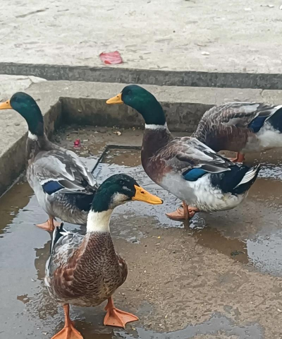 特点:野生品种,雄鸭头部为绿色,雌鸭为褐色。