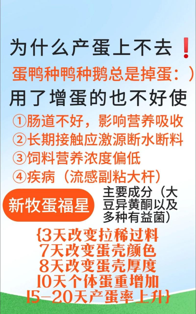 3. 饲料营养:蛋白质、钙质、维生素等营养均衡有助于提高产蛋率。