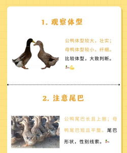鸭子的羽毛在不同阶段和品种中会有不同的表现,但一般来说,成年鸭子通过羽毛可以大致判断公母,不过这种方法并不完全准确,尤其是对于某些品种或幼鸭来说。以下是一些常见的判断方法:
