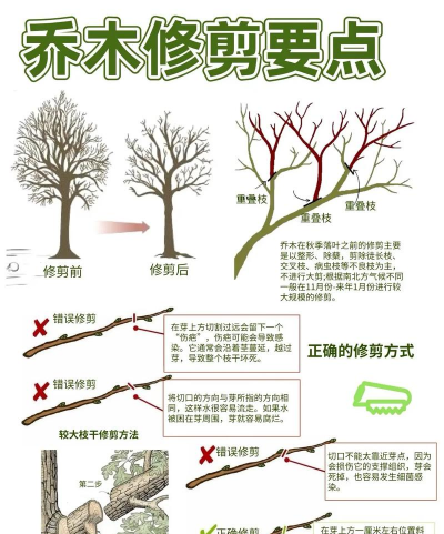 - 生长期修剪保留叶芽,非生长期在叶芽上端操作,确保剪口平滑。 - 大枝修剪采用斜切,促进伤口愈合。
