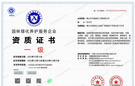 城市园林绿化一级资质是指企业具备在城市园林建设、绿化工程和道路绿化等领域进行设计、施工和管理的较高技术能力和丰富管理经验的一种资质认证。以下是关于城市园林绿化一级资质的一些关键信息: