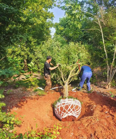 - 挖坑大小应为树根球直径的两倍以上,深度比根部高30cm左右,硬土区域需适当扩大。