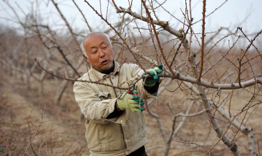 若指用嘴修剪树枝的兰林金,其身份为农民;