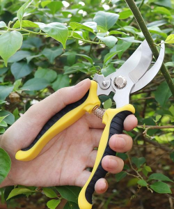 - 定干修剪时,刀刃向内,小片(未切断部分)朝外,避免割伤残留枝条。